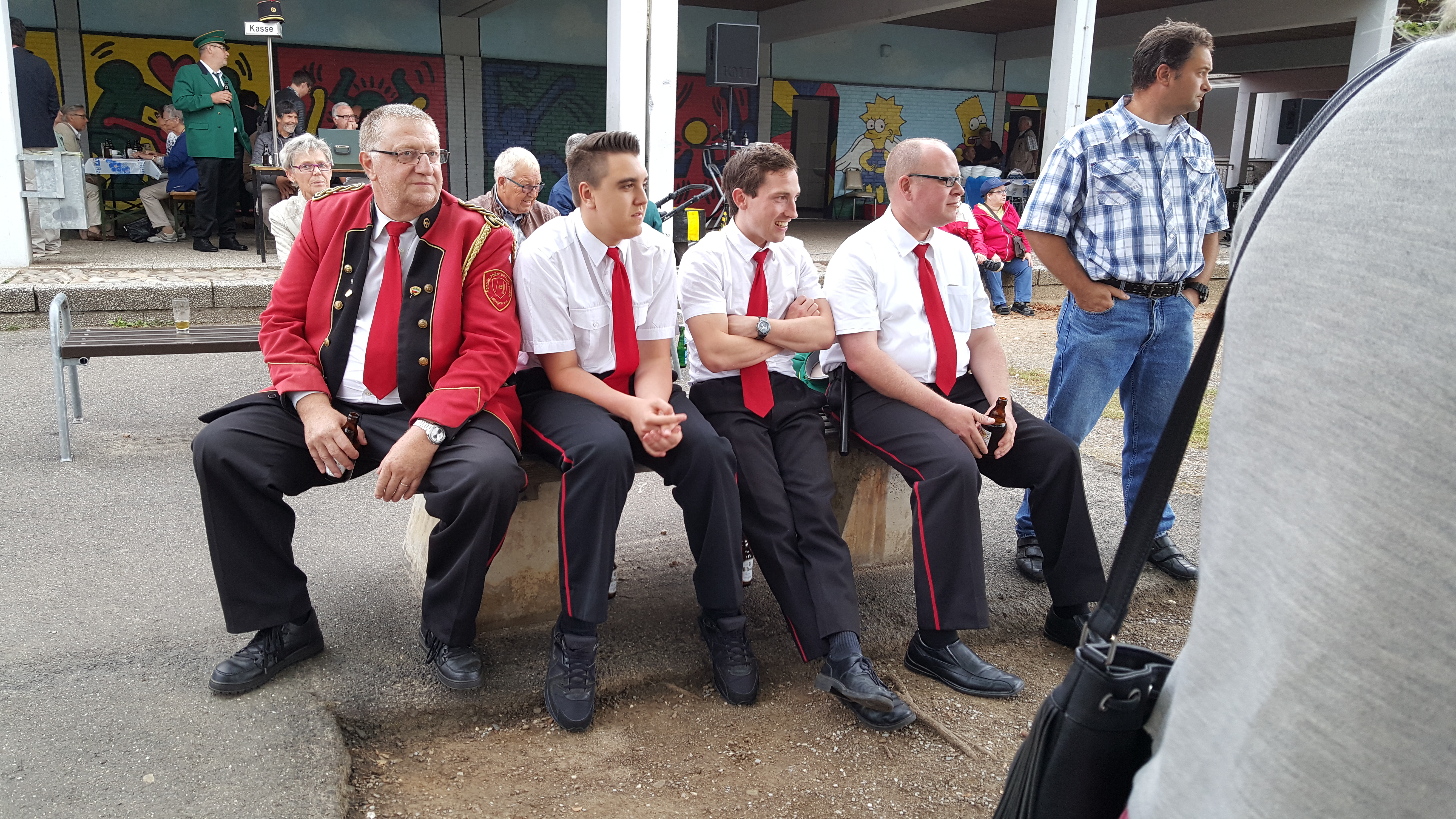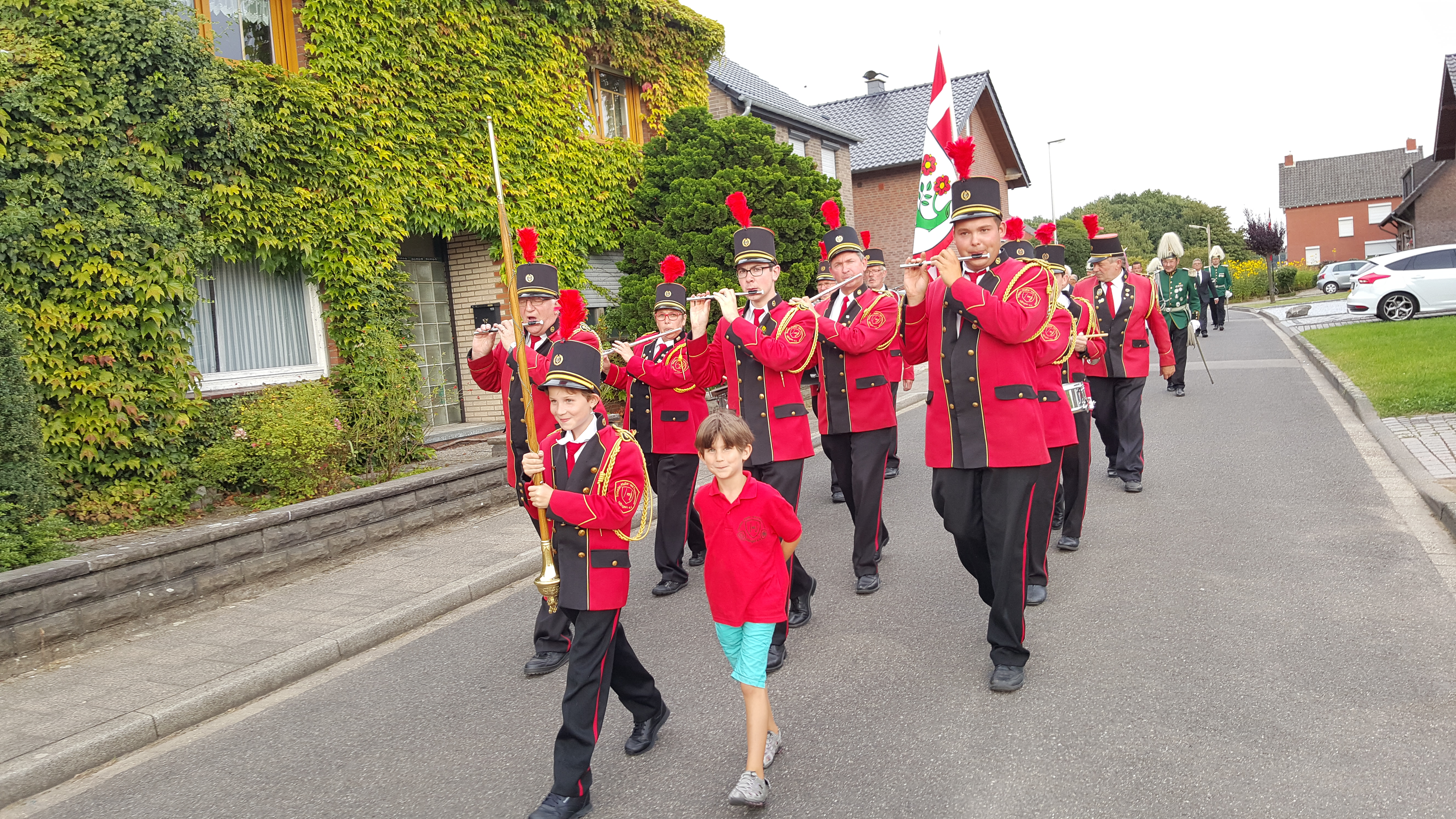 Zum gemeinsamen Kirchgang am Sonntagmorgen trafen wir uns, bevor es am frühen Nachmittag mit einem Umzug durch Höngen Richtung Dorfplatz zum Königsvogelschuß ging.