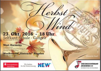 Die West Harmony und der Musikverein "Eintracht Birgelen" laden zum Konzert nach Gangelt ein.