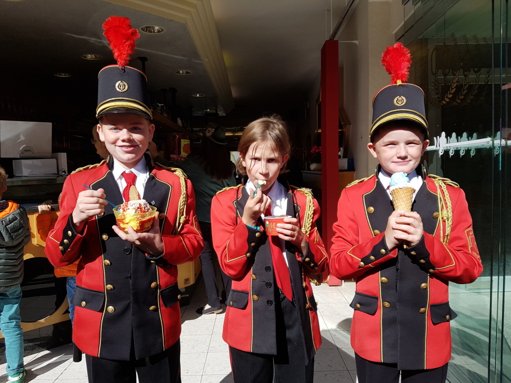 Wir bekamen viel Applaus, (vielleicht auch) weil wir mit der roten Uniform einen besonderen Farbtupfer neben all dem Grün, Blau und Grau setzten.
