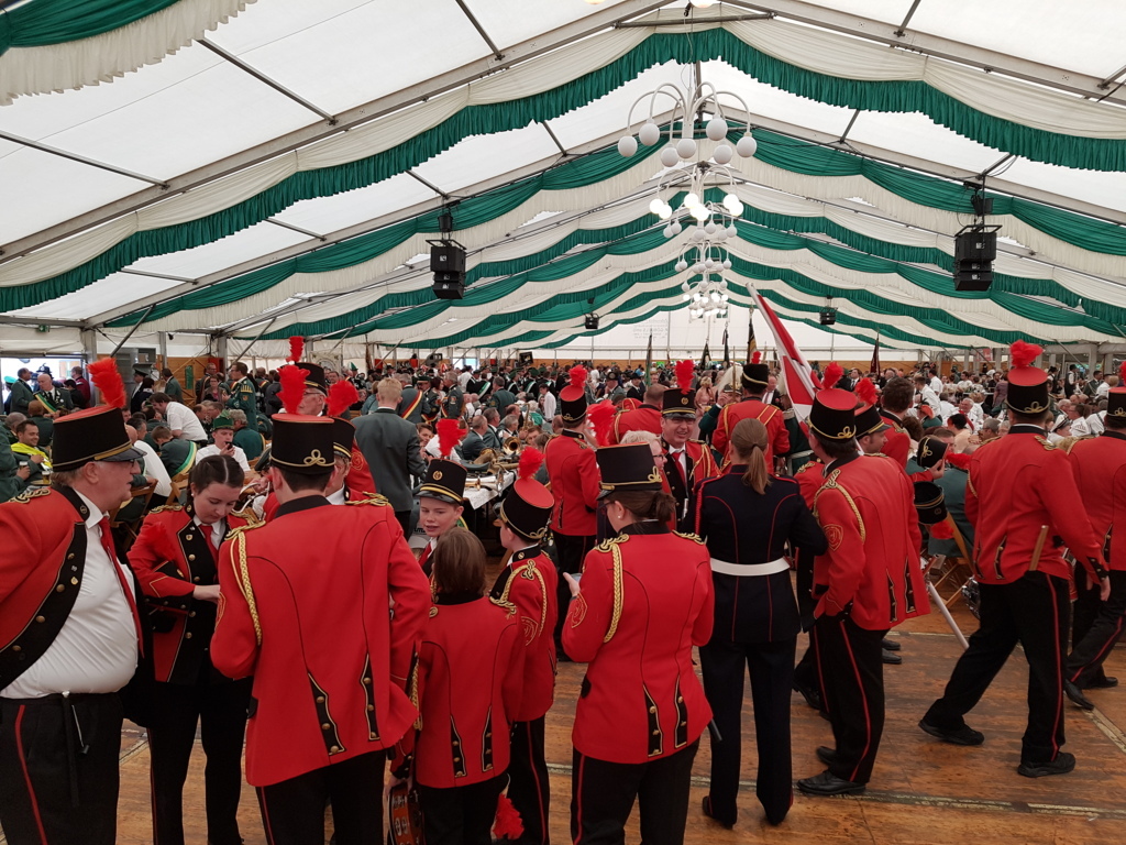 Zum Schluß des Umzugs zogen wir noch auf das Festzelt und wurden hier auch durch rhythmisches Klatschen unterstützt. Wir haben den Tag sehr genossen und bedanken uns bei den Organisatoren für den reibungslosen Ablauf. Hut ab!