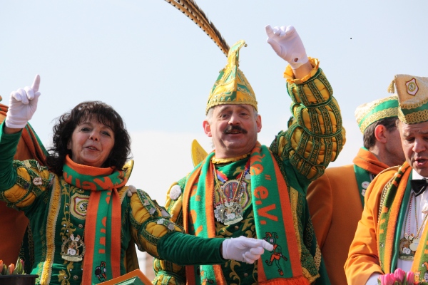 In diesem Jahr war ich leider nicht dabei, doch so hatte ich die Gelegenheit, den Zug einmal aus einer anderen Perspektive zu verfolgen, nämlich vom Straßenrand aus. Ein bißchen neidisch war ich schon, denn wann hatten wir in den letzten Jahren so ein tolles Wetter, der Himmel blau und die Sonne lachte mit den Jecken im Zug und den Zuschauern um die Wette.