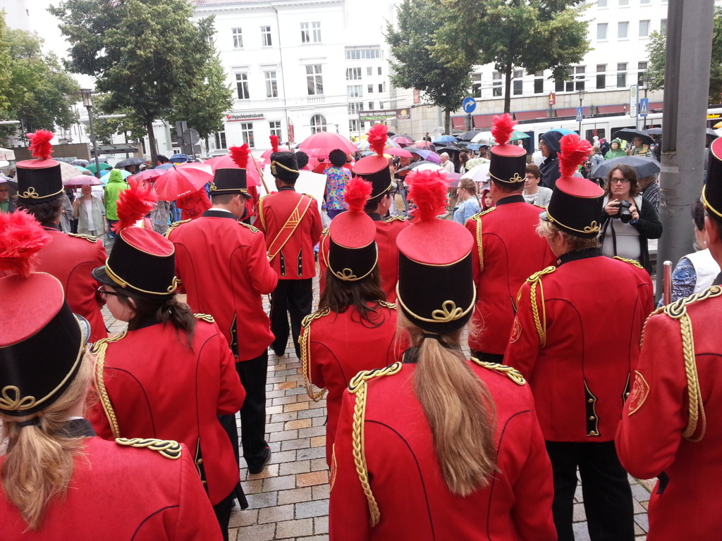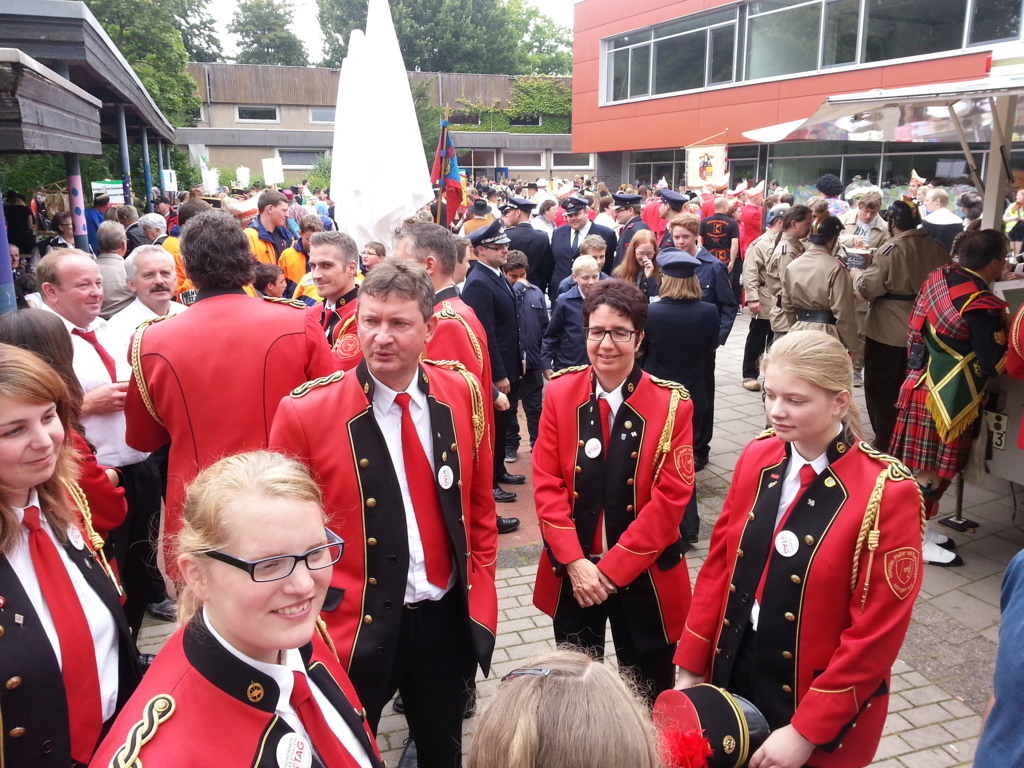 Um 15:30h hieß es Antreten zum großen Umzug und so ein Umzug ist immer etwas ganz Besonderes. Die Leute, die in 5er Reihen hintereinander stehen und jedem teilnehmenden Verein Applaus spenden… da macht das Marschieren richtig Spaß. Vor der Ehrentribüne wurden wir vorgestellt und einen extra Applaus gab es für unsere Parade.