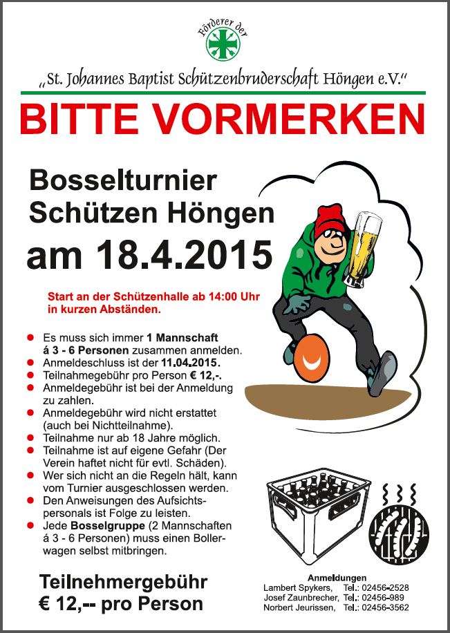 Der Förderverein der Schützenbruderschaft lädt auch in diesem Jahr zum Bosselturnier ein. Nähere Informationen liefert das Plakat in diesem Beitrag.