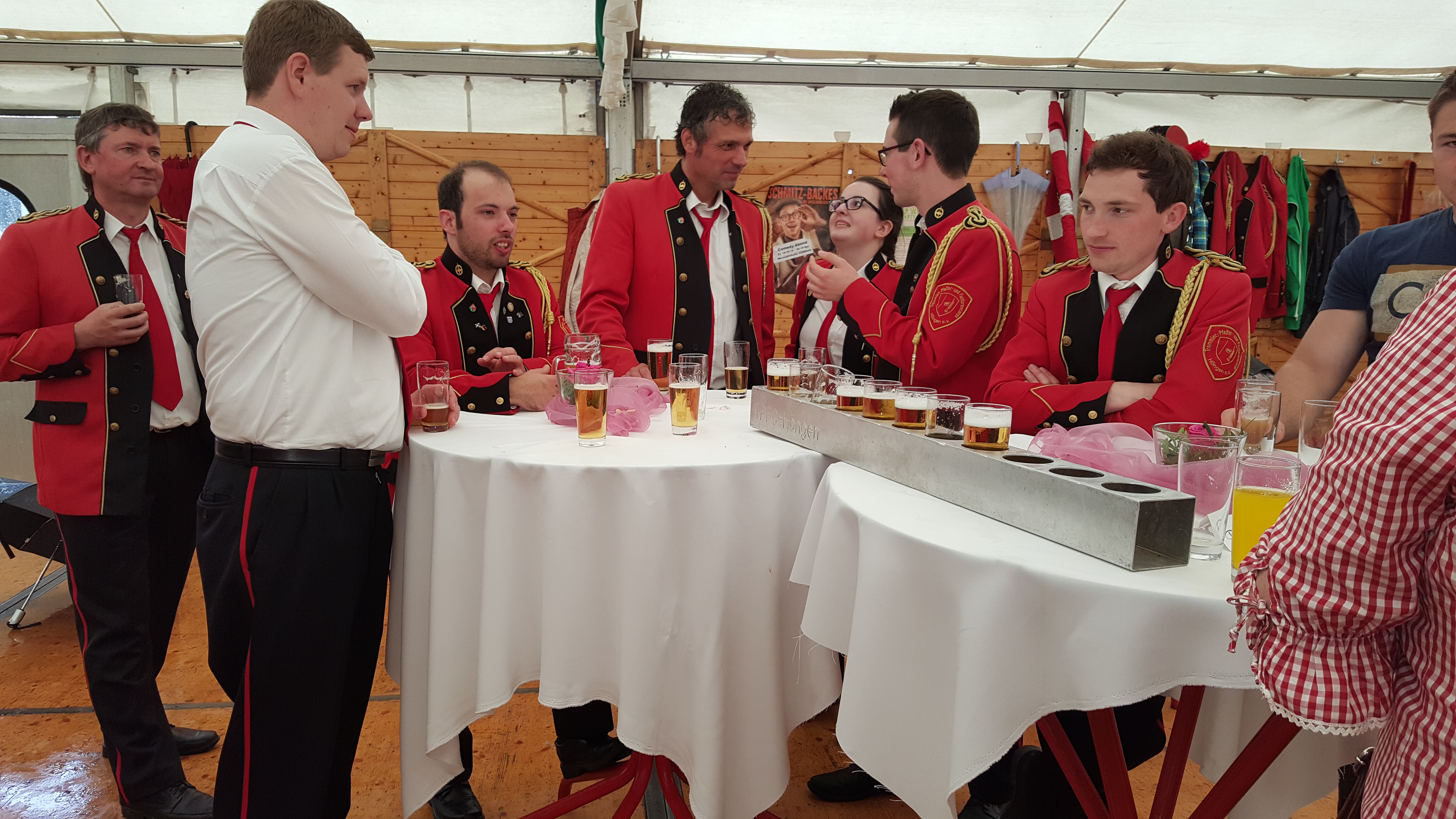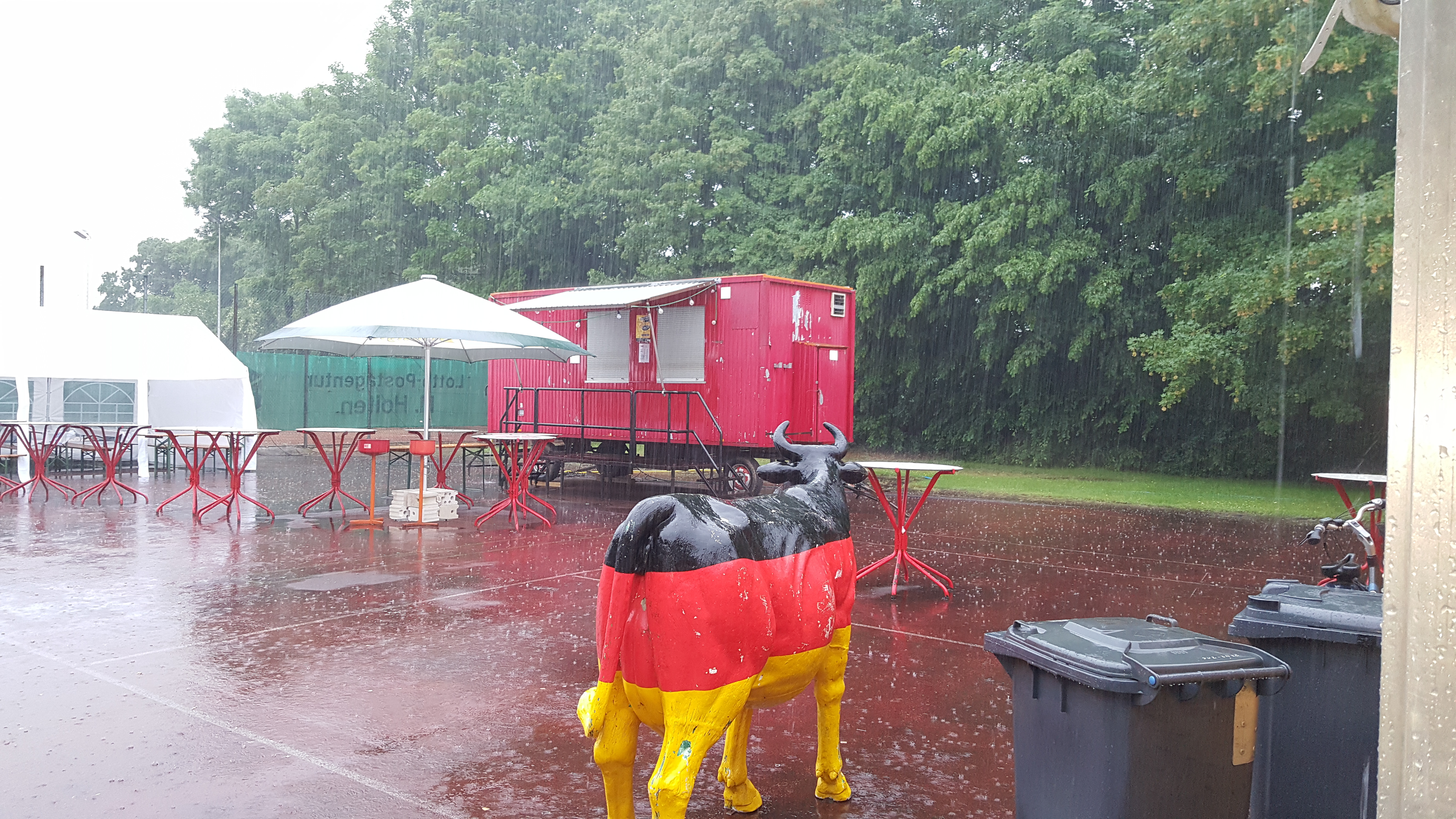 Wir ließen uns die gute Laune nicht verderben und freuten uns nach der Messe auf das Frühstück im Festzelt.