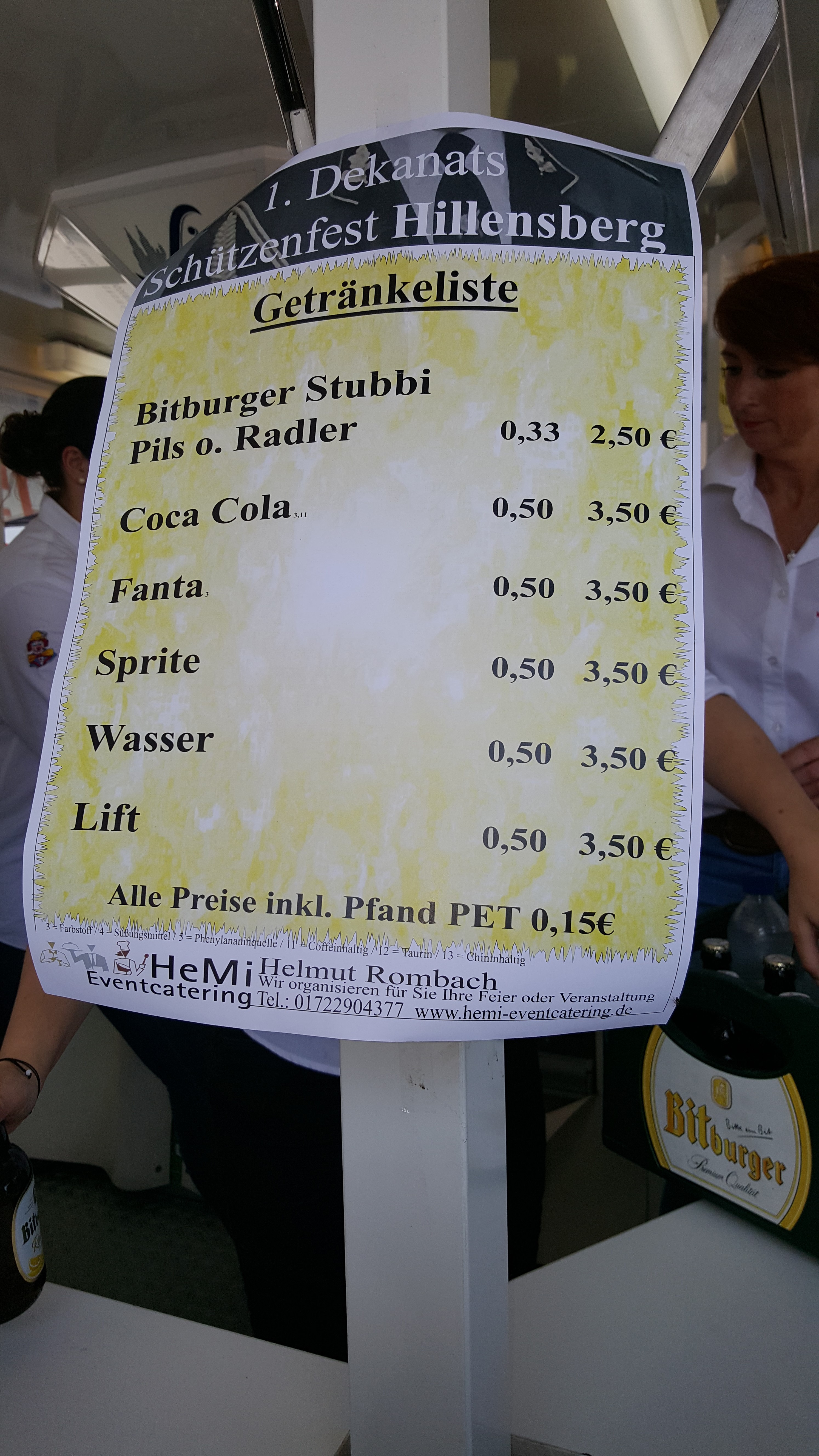 Auf der Festwiese traf mich erstmal der Schlag. Kaum Schatten, kaum Schirme und am Getränkeausschank ein Schild mit der Aufschrift 3,50€ in Worten drei Euro fünfzig. Aber Hallo.