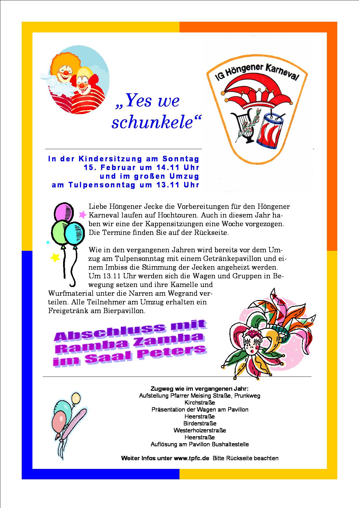 auch in diesem Jahr heißt es in Höngen wieder "Poort op, de Saal erop!".