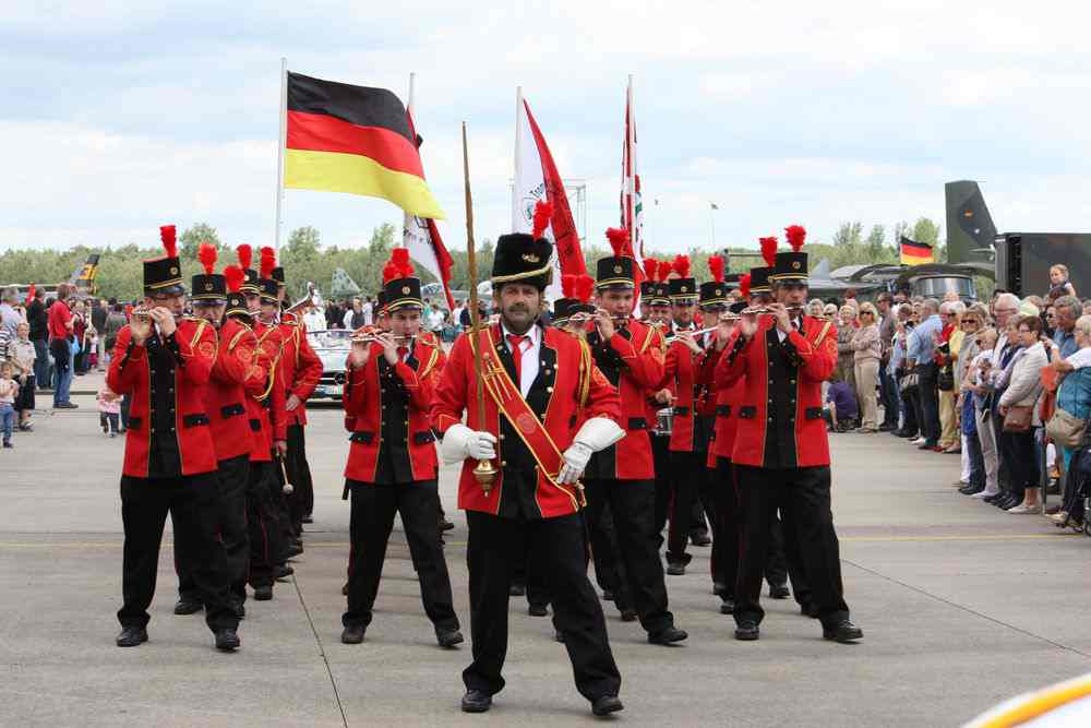 Doch zuvor hieß es Aufstellung nehmen zur Parade. Hier ging es einmal quer über die Rollbahn, an den verschiedenen Flugzeugen, Hubschraubern und sonstigem militärischen Equipment vorbei, die jedes Land ausgestellt hatte. Außerdem waren geschätzt mehr als 20.000 (in Worten zwanzigtausend) Gäste aus Nah und Fern vor Ort. Vor der großen Bühne, die mit ranghohem Militär besetzt war, zeigten wir unser volles Programm und zauberten den ach so ernsten Soldaten ein Lächeln auf die Lippen.