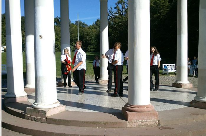 Wie bereits eingangs erwähnt wurde nicht nur musiziert. Für den Sonntagmorgen hatten wir einen Ausflug zum Hausberg von Wiesbaden geplant, den besonders die Jugendlichen nutzten. Die Attraktion am Neroberg ist die bereits 125 Jahre alte Nerobergbahn. Dies ist eine Standseilbahn, bei der zwei Wagen über ein Drahtseil und einer Umlenkrolle am Berg abwechselnd auf und ab gezogen werden. Als Antrieb für die Überwindung der 84 Höhenmeter dient dabei Wasserkraft. Der Wagon der oben auf dem Berg steht, wird mit bis zu 7 Tonnen Wasser beladen und zieht so den Wagon der unten steht beim Herunterfahren den Berg hinauf. Dies ist eine ausgeklügelte Technik, die keinen Lärm und Abgase verursacht und von den Jugendlichen sehr bestaunt wurde.
