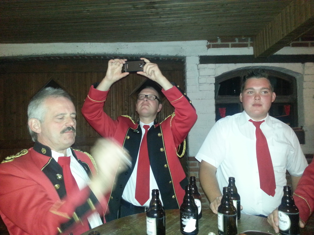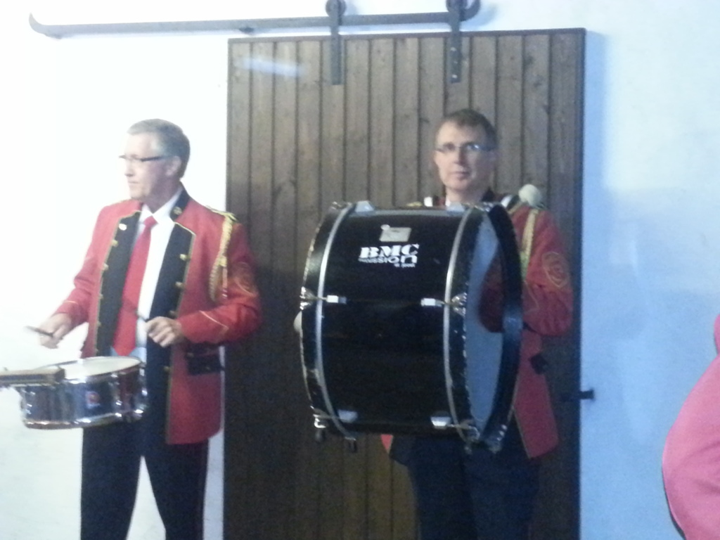 So trafen wir uns zusammen mit der DHF-Band und zogen in der Dämmerung zum Jubelpaar. Dort angekommen begrüßte uns Heinrich voller Stolz und wir gaben zwei Stücke zum Besten.
