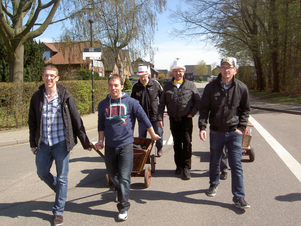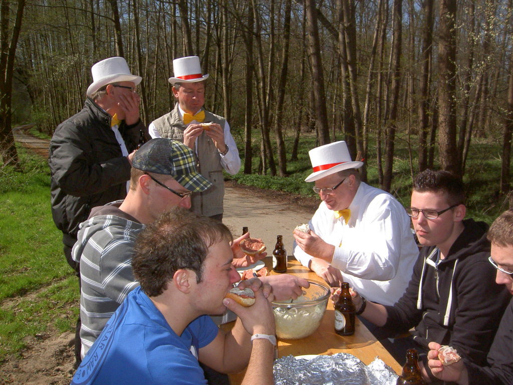 Mit Bollerwagen, Bowlingkugel und Bier ging es raus in die Natur – bei bestem Wetter durch Wald, Feld und Wiesen und endlich wieder „an de Bääk“ entlang. Ja, beide Kugeln landeten im Wasser, wie es sich gehört. Aber besser im Wasser als in der kleinen Jauchegrube von Bauer Müller!