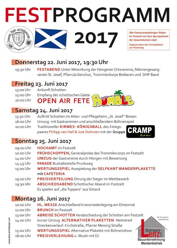 Ein Höhepunkt ist wiederum der schottische Partnerschaftsverein die Borthwick & District Pipe Band aus Midlothian.