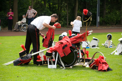 Wie üblich waren die Höngener Schützen mit dem Trommler-, Pfeifer- und Fanfarencorps die Ersten auf der Festwiese. Nachdem wir endlich unseren Startplatz 17 gefunden hatten (die Saeffelener nummerieren zur allgemeinen Verwirrung nämlich auch alphanumerisch, d.h. 1A, 1B usw.), konnten wir gemütlich den Einzug der anderen auswärtigen Vereine verfolgen.