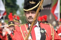 Die traditionelle Ansprache von Heinrich Aretz vor der Feldandacht gestaltete sich wieder für alle Anwesenden sehr heiter. Doch für den ersten großen Lacher des Tages sorgte der Saeffelener General, dem der einzige Satz, den er auf einem Schützenfest zu sagen hat, nicht so recht über die Lippen kam. Nach der Korrektur des ersten missglückten Kommandos (Kommando zurück "Im Gleichschritt rechtsschwenk"), konnte sich der große Festzug endlich in Bewegung setzen.