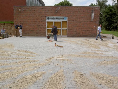 Des Weiteren wird der Vorplatz der „Sint Jan Schützenhalle“ gepflastert, um den Platz nicht nur zu verschönern, sondern sicherlich auch, um bei den anstehenden Veranstaltungen trockenen und saubereren Fußes in die Halle zu kommen.