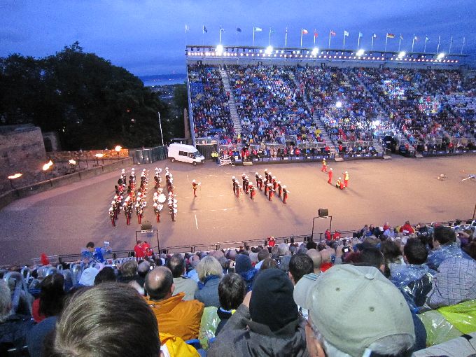 Nach dem Mittagessen ging es dann zur Tanzschule, wo zur Freude der Mädels ein schottischer Tanznachmittag auf dem Programm stand. Wie perfektes Highland Dancing funktioniert, sahen wir schließlich am Abend bei der Abendvorstellung des Royal Edinburgh Military Tattoo. Dort konnten wir auch einen Blick hinter die Kulissen werfen. Zum Erstaunen ein paar Weniger trafen wir dort auf einige Brasilianer, die uns zuvor schon einmal in Edinburgh begegnet waren.