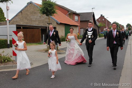 Pünktlich um 14 Uhr startete der bewertete Umzug mit 14 Gastvereinen sowie den Schützen aus Höngen und Saeffelen. Die Parade der Vereine an der Bushaltestelle Prunkweg wurde moderiert von Oliver van Hall, der zu jedem Korps etwas zu sagen hatte. Die Glanzlichter im Festzug waren natürlich die Königspaare aus Höngen und Saeffelen.
