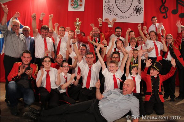 Nachdem Höngen als Ausrichter traditionell als Letzter gespielt hatte, wurde gemeinsam von allen Selfkantvereinen der Selfkantmarsch vorgetragen, der immer wieder ein Highlight ist. Da Bürgermeister Corsten in Urlaub war und nicht den Selfkantmarsch singen konnte, als auch der stellvertretende Bürgermeister Heinz-Hubert Ruers nicht singen wollte, wurde dieser Part von Ruers Tochter Anna Lina übernommen und super vorgetragen. Um 19.10 Uhr war es dann soweit, die Spannung war immens hoch, der Außenbereich leerte sich und das Zelt wurde prope voll. Dann wurden nach ein paar Dankesworten die folgenden Ergebnisse: