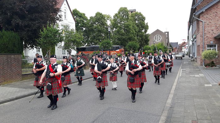 Umzug: 1. Montfort, 2. zu aller Überraschung die Borthwick & District Pipe Band, 3. Hastenrath